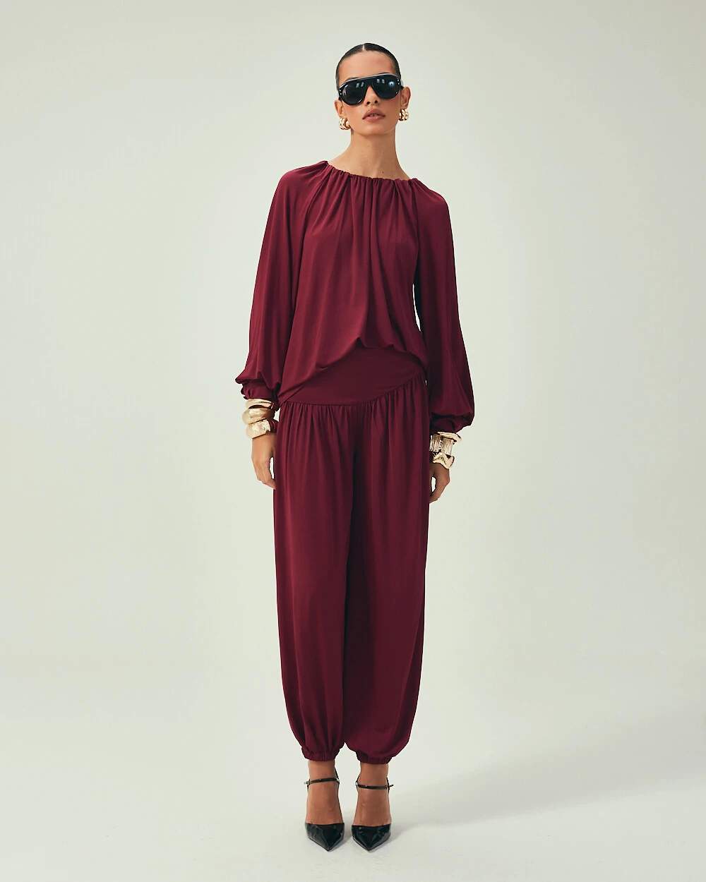A Calça Leger tem um caimento solto que traz liberdade ao vestir, mas sem perder a elegância. O ajuste na cintura e nos punhos cria uma silhueta equilibrada, deixando o look arrumado mesmo nas produções mais descomplicadas.